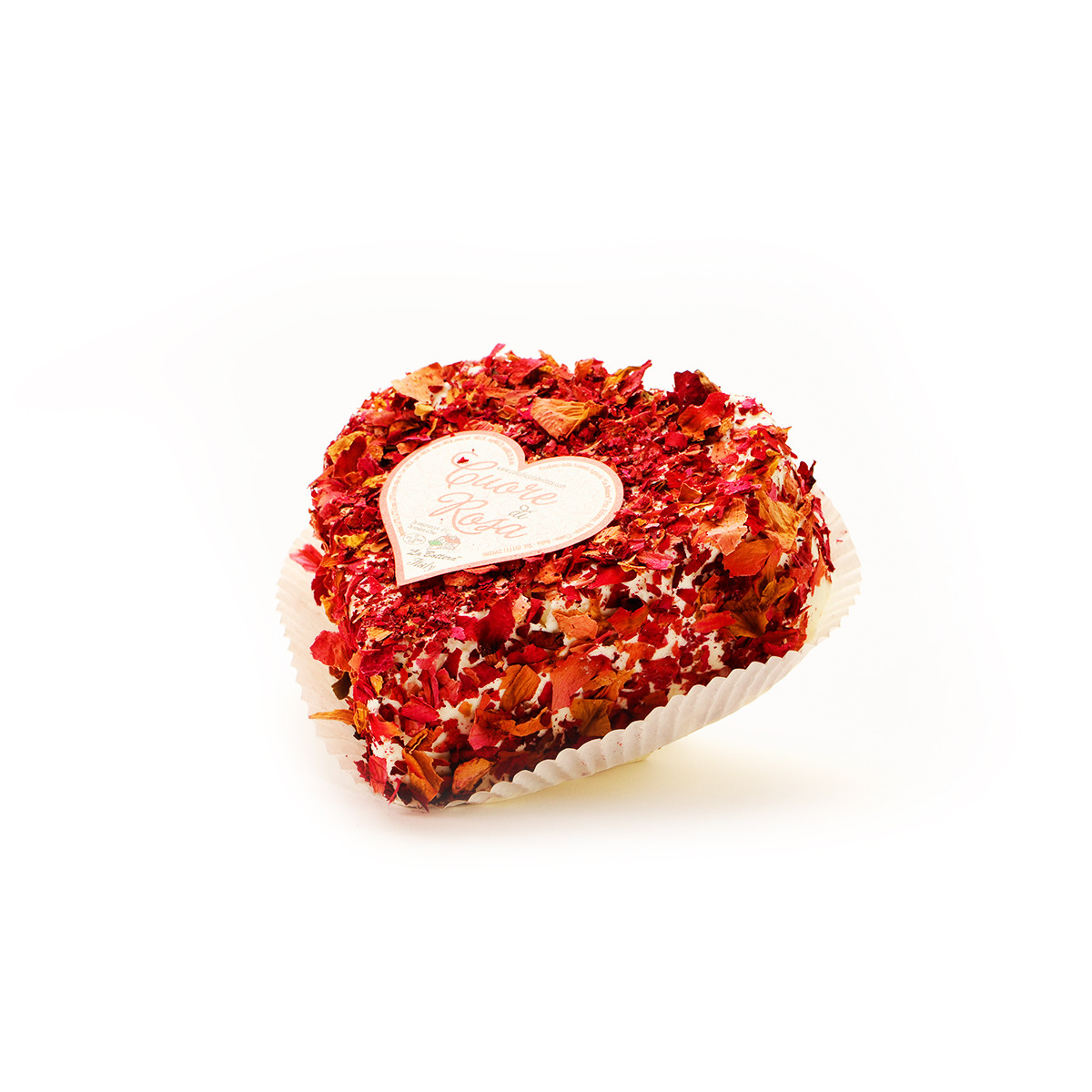 a je tvarován do podoby srdce, ozdobeného plátky růží.