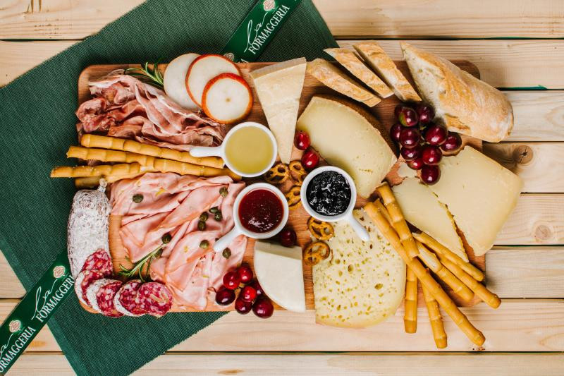 • Sýr Furfante nebo sýr Caciotta fresca 150 g • Sýr Verena dolce 150 g • Sýr Tre Corti 100 g • Sýr Pecorino Sardo 100 g • Sýr Gran Moravia 100 g • Mandarinkové želé nebo chilli džem 40 g • Červené vinné želé nebo chilli džem 40 g • Fíkové želé nebo cibulový džem 40 g • Grissini Rosmarino 100 g • Prosciutto crudo 100 g • Salame Cacciatore 150 g • Mortadella 100 g
