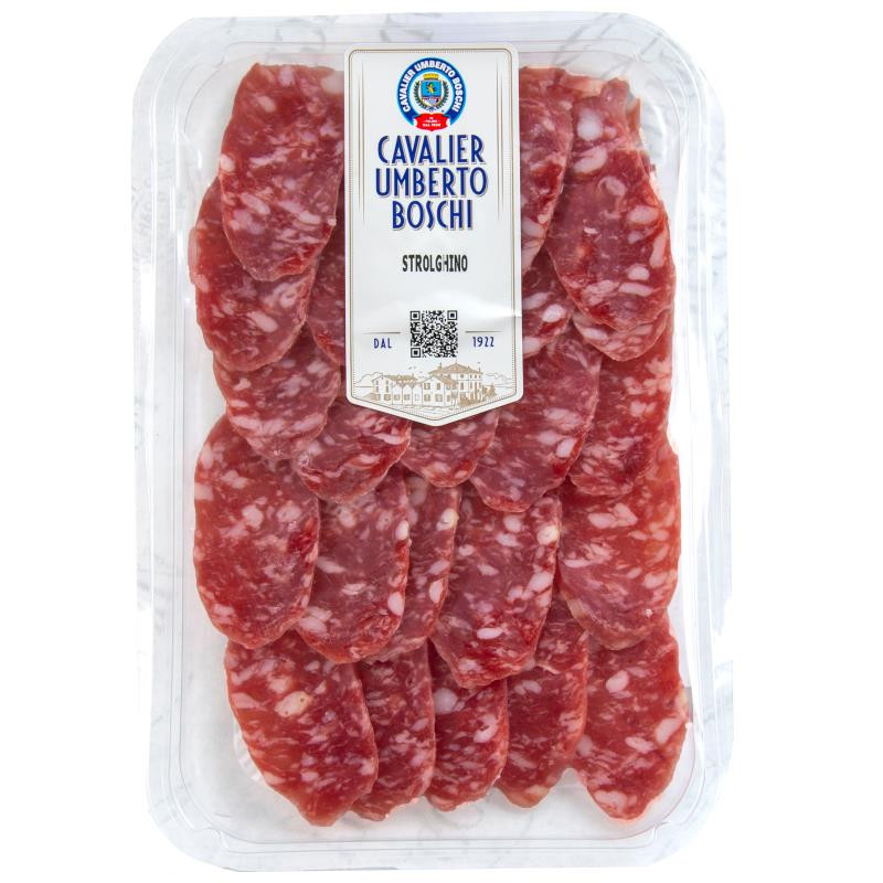 Strolghino je nejmódnější salámek v regionu Parma vyráběný pouze z toho nejlepšího italského vepřového masa. Silnější plátky jsou ideální jako rychlé občerstvení při posezení s rodinou nebo s přáteli, k pečivu jako svačinka nebo večeře.
